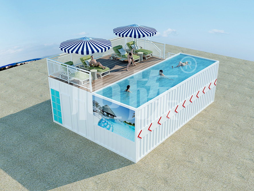 柜族出品的集裝箱游泳池占地面積少、造價(jià)低,適合庭院、度假區(qū)及游樂場所使用。
